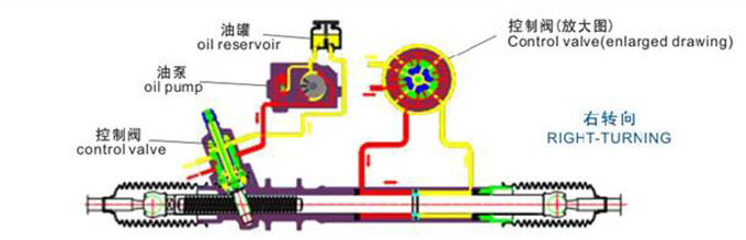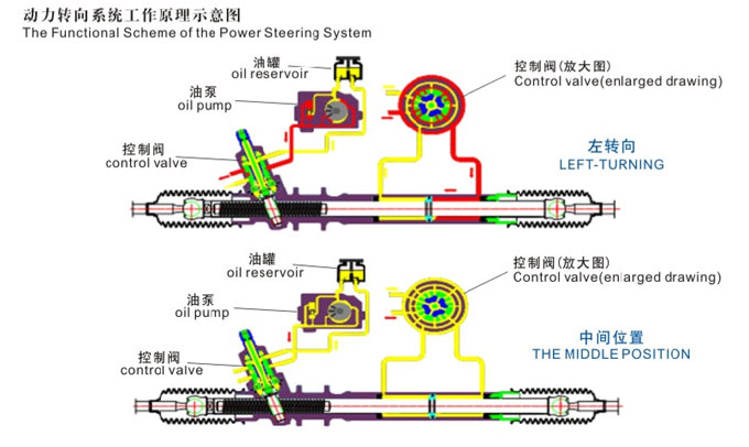 一般是由轉向油泵不停頓的隨發動機轉動而工作,把油從油罐吸出向動力轉向器控制閥供油。無轉向動作時,控制閥處于常開中間的為止,油通過控制閥直接回到轉向油罐。