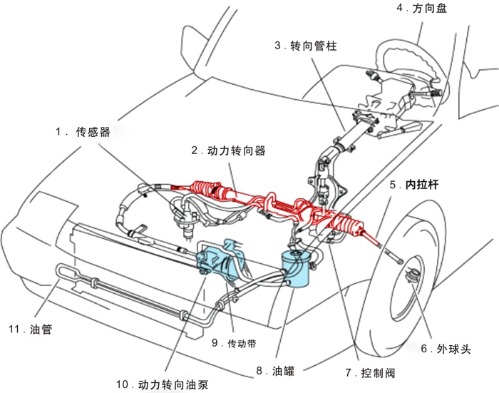 在汽車轉彎時,減小對方向盤的操作力;限制轉向系統的減速;在原地轉向時,能提供必要的助理;轉向靈敏度高,操縱輕便,施與方向盤的力較小,減輕了駕駛員的勞動強度;限制車輛高速具有較好的轉向穩定性;在轉向裝置失效時,能保持機械轉向系統有效工作;能吸收路面對前輪產生的沖擊,減輕了方向盤所有到的反沖擊力和"打手現象"。(動力轉向系統由轉向油罐、轉向油泵、轉向管路、動力轉向器組成。)